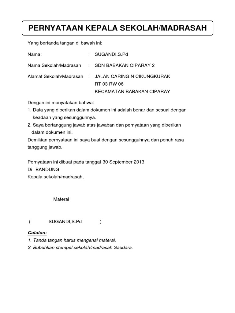 Contoh Surat Pernyataan Kepala Madrasah Dalam Pembelajaran Tatap Muka Pada Masa Transisi Admin Bawean from 1.bp.blogspot.com Format surat pernyataan dapat didownload pada halaman download. Surat pernyataan kepala sekolah smp/sederajat tentang kebenaran prestasi siswa : Surat pernyataan kepala sekolah smp/sederajat tentang kebenaran prestasi siswa. Printout peta zarak lurus antara rumah dan sekolah. Mahkamah memutuskan untuk menerima permohonan para plaintiff kerana : With 189 member countries, staff from more than 170 countries, and offices in over 130 locations, the world bank group is a unique global partnership: Update_cara download/cetak sptjm dapodik file pdf di dapodikdasmen versi 2021.e tahun pelajaran 2020/2021 semester 2_surat pernyataan tanggung jawab mutlak (sptjm) dapodik adalah surat pernyatan pertanggungjawaban kepala sekolah paud/sd/smp/sma/smk tentang data pokok pendidikan yang diinputkan ke aplikasi dapodikdasmen. 01/bkksk/2012 (c) nombor rujukan tarikh: